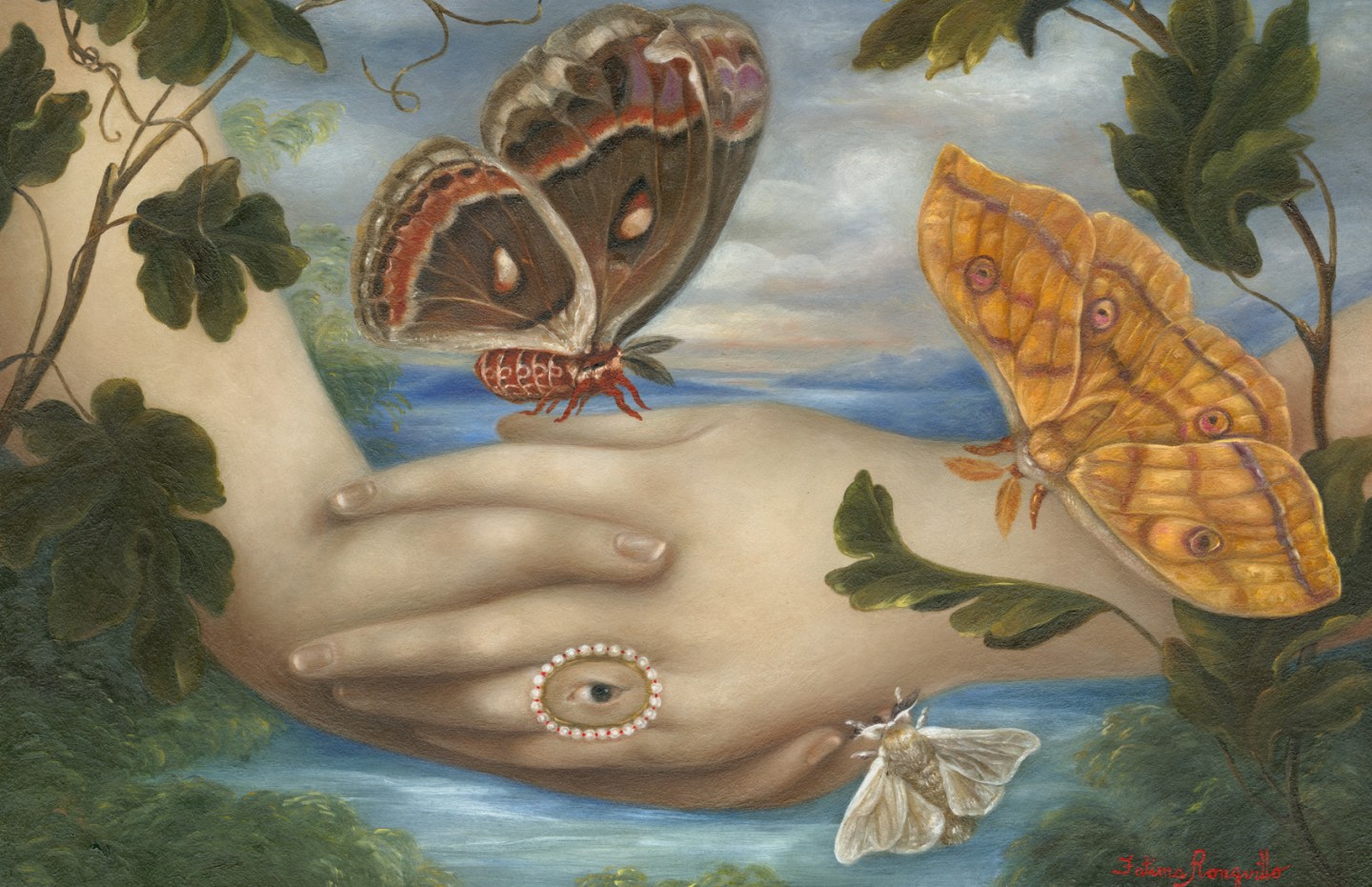 Fatima Ronquillo is a self-taught painter who combines old master techniques with a playful modern sensibility to create a world where art history meets with imagined characters from literature, theatre and opera. Born in Pampanga, Philippines in 1976, Fatima Ronquillo emigrated as a child to the United States in 1987 where her family settled in San Antonio, Texas. She began exhibiting her work from the age of fifteen and is now widely collected in the United States and internationally. Her work has appeared in numerous art publications including American Arts Quarterly, Southwest Art and American Art Collector as well as in the fashion magazines The Cut / New York Magazine,Vogue Gioiello, Marie Claire and A Magazine Curated By Alessandro Michele. She lives and works in Santa Fe, New Mexico.