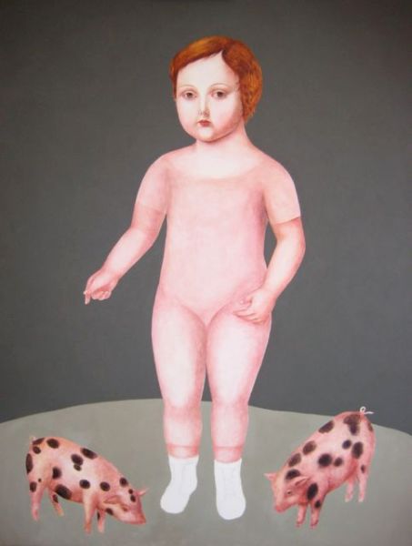 I start the acrylic portions. I use Golden Fluid Matte Acrylics because of the gouache-like quality. It’s all acrylic from here… painting in the necessary details.