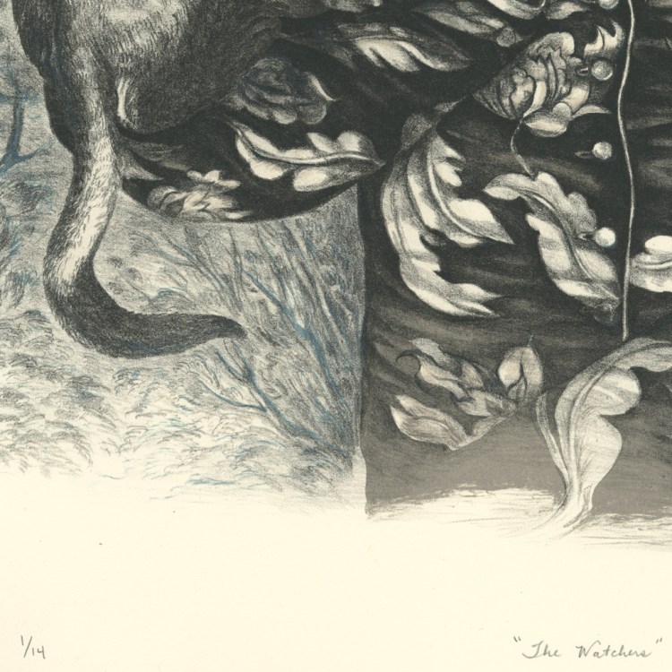 Blackrock Editions and I are very pleased to announce the release of The Watchers, a limited edition of 14, four-color lithograph print―the result of a printmaking collaboration from March through October 2020. The Watchers is evocative of nineteenth century lithographs with its delicate line work and elegant combination of warm and cool grays ranging from deepest black to palest pink french gray. Working on the limestone was a wonderful experience as not only did I feel connected to an old traditional medium, but the stone was responsive to the lightest and most delicate marks. This collaboration is truly a labor of love consisting of several weeks of planning, drawing, adjusting, and proofing to achieve the final print. For purchase inquiries please contact Blackrock Editions via email at info@breditions.com