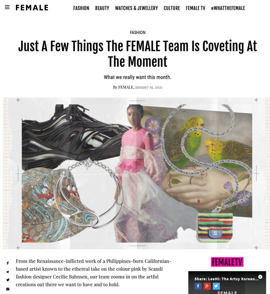 Thank you very much to FEMALE Singapore for featuring my painting “Together” in their January/February 2021 Art & Culture Edition. It is a thrill to have them share my paintings to their audience.