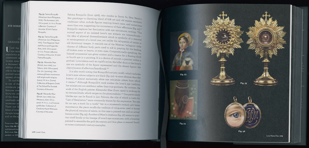 I am also very thrilled to share that two of my paintings are in the book Lover’s EYES: Eye Miniatures from the Skier Collection. They appear as representations of the lover’s eye in contemporary art in the chapter essay “Love Never Dies” by Graham C. Boettcher, PhD, the R. Hugh Daniel Director of the Birmingham Museum of Art, Birmingham, Alabama.The book is an updated edition of the original first published in 2012 and includes new essays, additional lover’s eyes and contemporary examples.