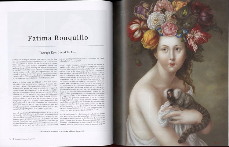It has also been awhile since I have posted updates on the website (just been busy painting in the studio). There have been some really lovely interviews and mentions from magazines such as LYF, Beautiful Bizarre, Tatler and Tatler Philippines. Please have a look on my newly updated Press page to read the articles or for a closer look. Thank you as ever for your support of my work and I promise to do a better job of posting updates in future.